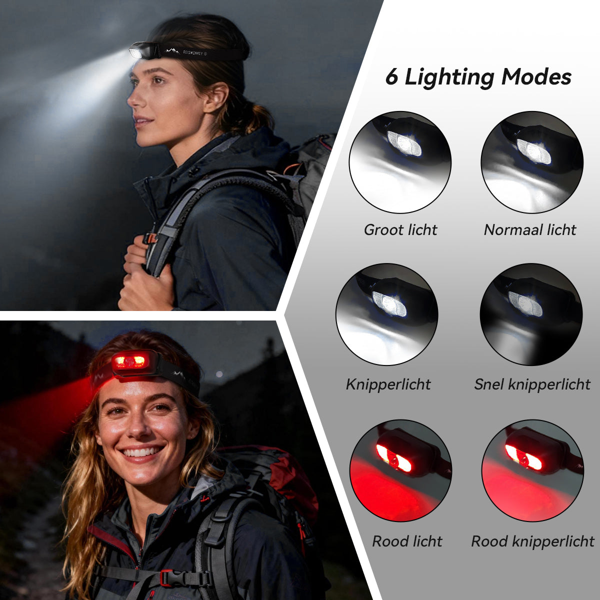 De meeste telefoon zaklampen schijnen slechts enkele meters. Met deze hoofdlamp kun je tot 35 m schijnen, zodat je ook goed vooruit kunt kijken en houd je je handen vrij. Voor noodsituaties heeft deze hoofdlamp rood licht. Dit komt ook van pas als je even geen fel licht wil, maar bijvoorbeeld wil kaartlezen of een boekje wil lezen.