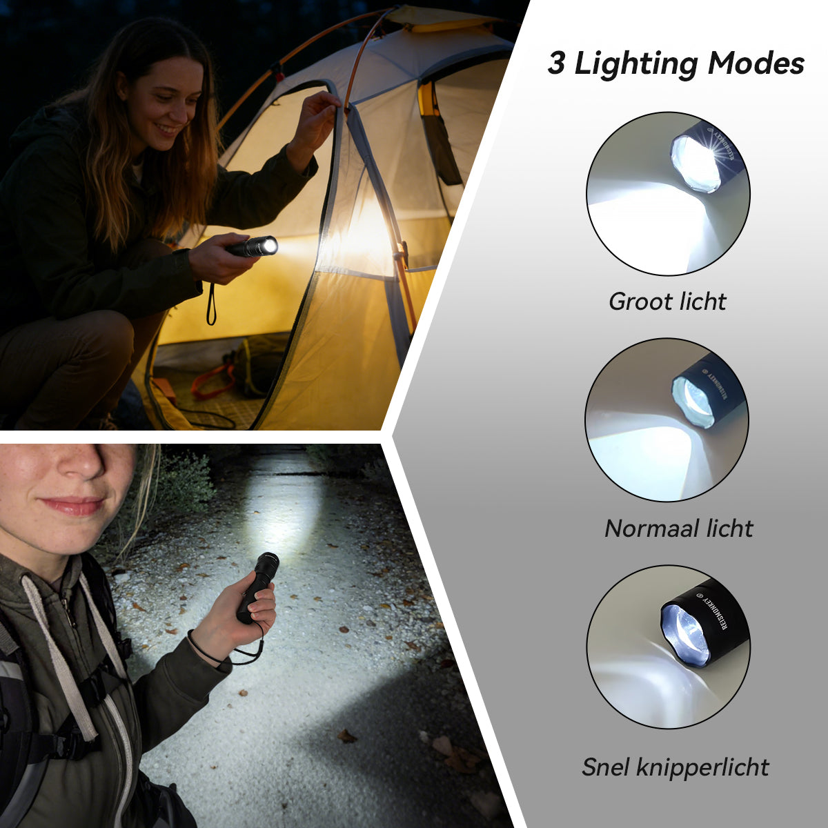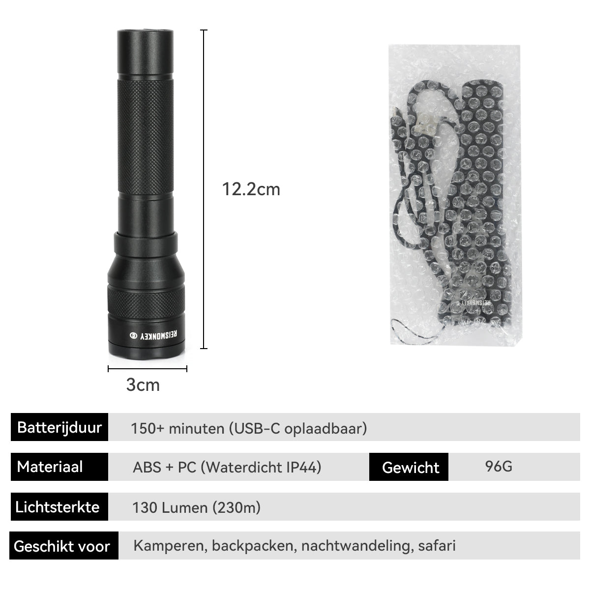 Ga je hiken of survivallen dan is deze kleine zaklamp ook handig. De zaklamp is compact en weegt praktisch niks. Ondanks dat geeft het Led licht genoeg licht om ver en dichtbij goed te kunnen zien. Dat maakt deze lamp een goede zaklamp geschikt voor alle soorten reizen. De zaklamp is USB-C oplaadbaar en de batterij gaat op krachtigste stand 150 minuten mee voor je weer op moet laden.